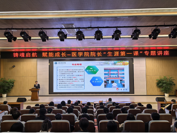 9月22日下午,医学院在工程舫学术报告厅举办2025级新生“铸魂启航,赋能成长”院长“生涯第一课”专题讲座。医学院院长张煜星、院党委书记兼副院长马璐、院长助理姚坤、韩朝,以及全体辅导员、班主任与300余名202...